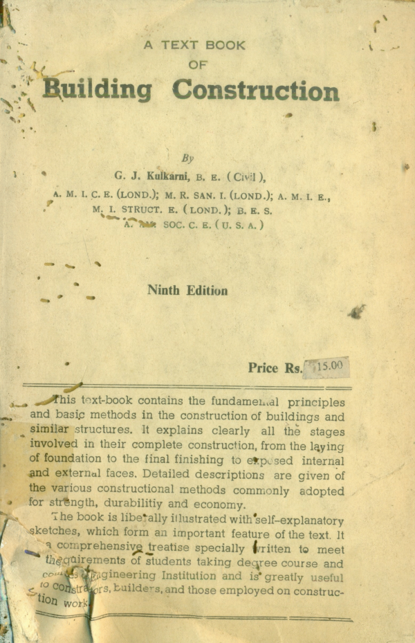 Images for A text book of building construction : Kulkarni, G. J.